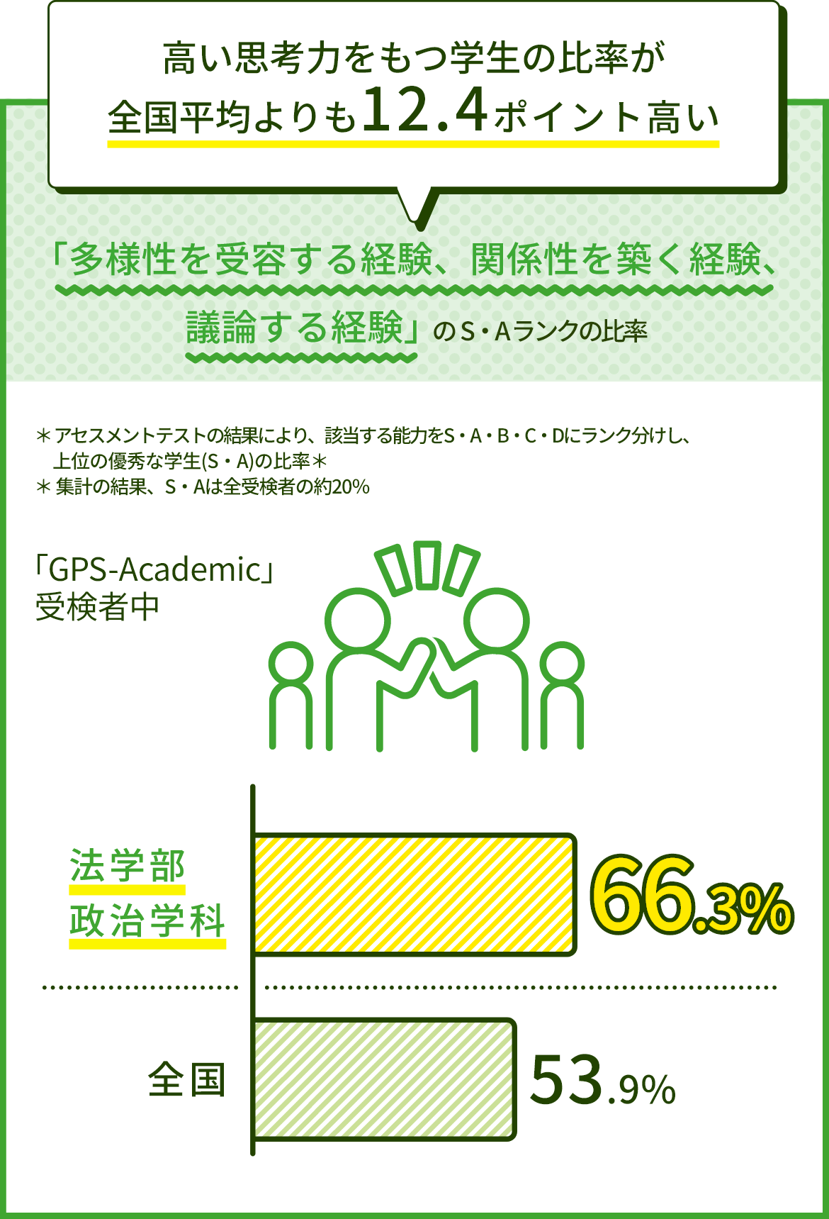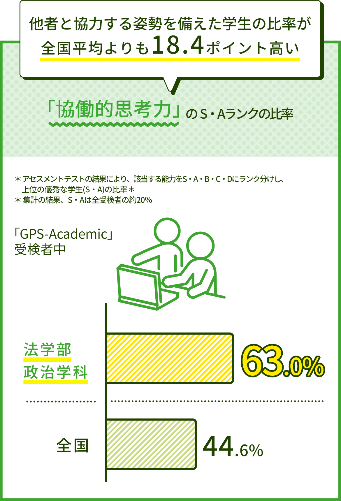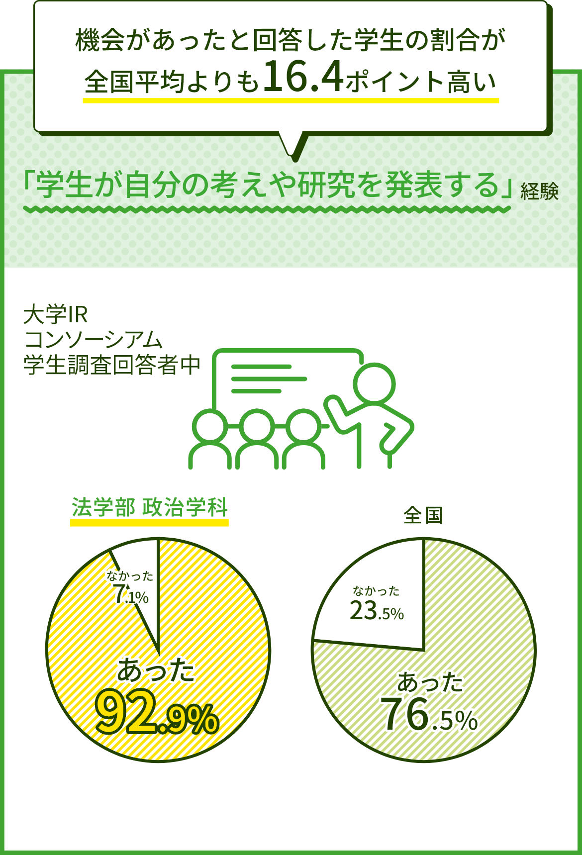 大学に入学すると、1年次からゼミをはじめとした少人数の授業で、高校と比べてディスカッションやプレゼンテーションをする機会がたくさんありました。最初は、人前で話すこと自体に慣れておらず緊張していたうえに、大学で初めて学ぶ専門的なテーマに知識が追いつかず、なかなかうまく対応できませんでした。経験を重ねる過程で私が意識したのは、相手と意見が対立したときに、意見をじっくり聴くこと。自分と異なる意見をもつ相手に単に正面から自分の意見をぶつけるだけでは、議論を深められません。異なる意見の中に共通点や類似点を探したり、意見の背景となっている考えに注目したりして、話を引き出す。よく聴く意識をもって臨むうちに、論点を頭の中で整理できるようになり、自分の意見を伝えるときのプレゼンテーション能力向上にもつながったと感じています。また成功体験が自信になり、積極的な態度を身につけることもできました。