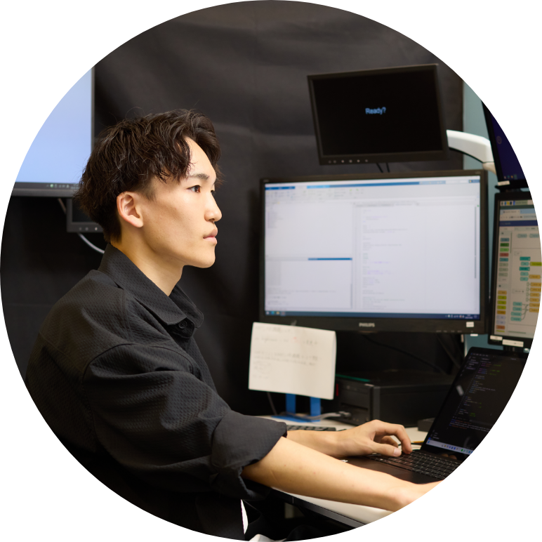 卒業後は、システムインテグレーターでエンジニアになることが決まっています。以前は自動車メーカーをめざそうと考えていたのですが、在学中に機械とITの両方を学んだことで、IT側から自動車にアプローチするキャリアに関心をもつようになりました。内定先にはモビリティ支援を担う部門があり、自動車メーカーに対し自動運転の技術を提供しています。研究を通じて培ったシステムを構成する能力は、安心安全な制御システムの開発に活かせますし、チームの中で自分がどのような役割を果たすのが最も貢献できるのか、常にアンテナを立てて仕事に取り組んでいきたいと考えています。大学で追究してきた「人と機械を結びつけるシステム」をより人に有用なかたちで実現することが目標です。