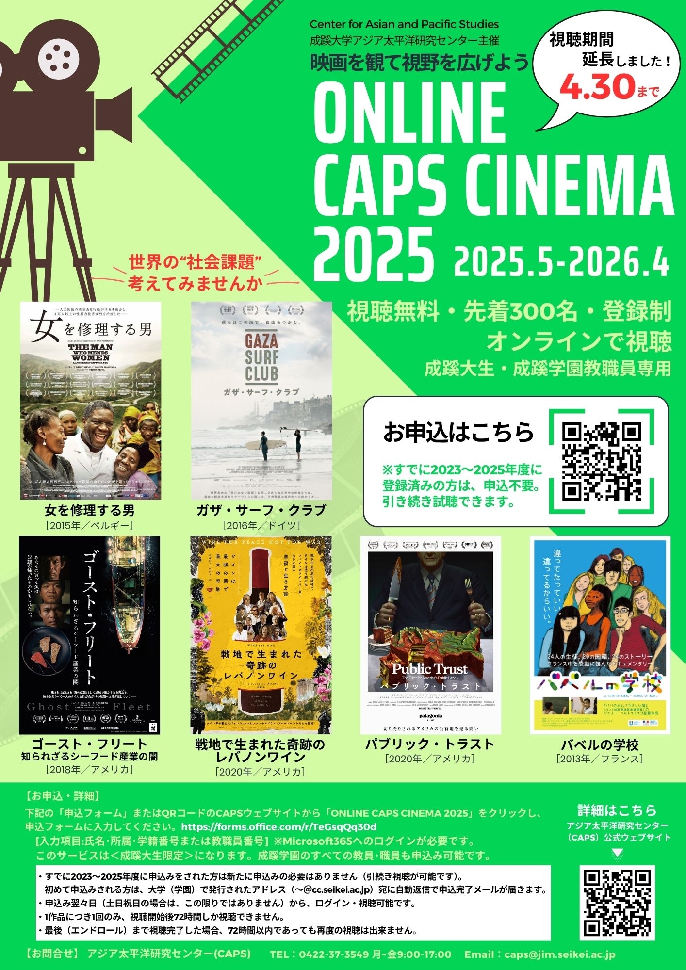 アジア太平洋研究センター(CAPS)では、ユナイテッドピープル社が提供するオンライン映画配信サービスcinemo.bizを導入し、【ONLINE CAPS CINEMA 2025】を開催いたします。