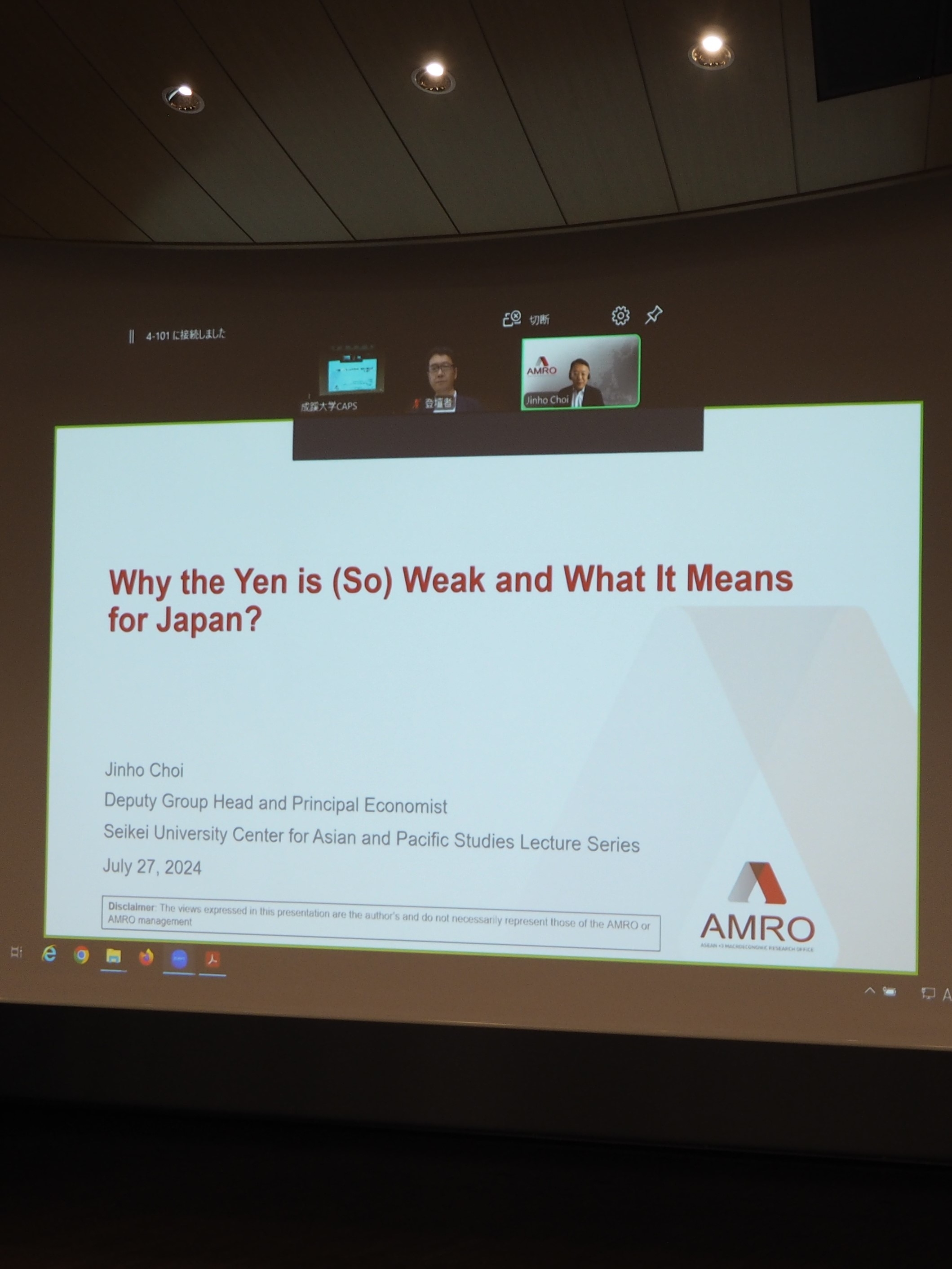 2024年7月27日に成蹊大学アジア太平洋研究センター(CAPS)主催講演会「円の実力:1㌦100円時代は再び訪れるのか?」が4号館ホールで開催されました。猛暑にもかかわらず305名の方にご来場いただきました。
