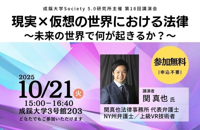 Society 5.0研究所主催第18回講演会「現実×仮想の世界における法律:未来の世界で何が起きるか?」