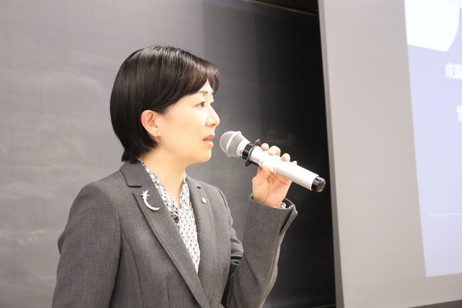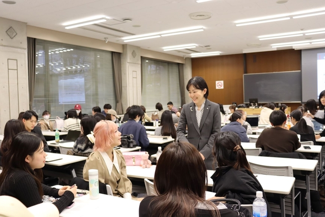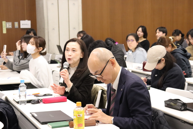 さらに、授業のコーディネータを担当する経営学部 藤田 玲子教授は、外部講師を招いての授業であるため、14回のコース終了後には深い学びが得られるよう工夫を重ねています。