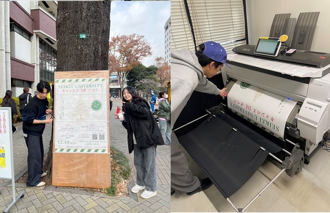 クリスマスらしい飾りつけには、サステナビリティ教育研究センターによる竹あかりも華を添えました。竹あかりには、成蹊中学・高等学校の敷地内にある竹林から出た竹の廃材を再利用しています。