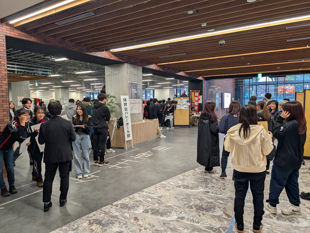 雨天の中での開催となりましたが、大学体育館で行われた入学式とオリエンテーションに参加した新入生たちが数多くトーリウムに来場し、とても賑やかな新歓となりました。