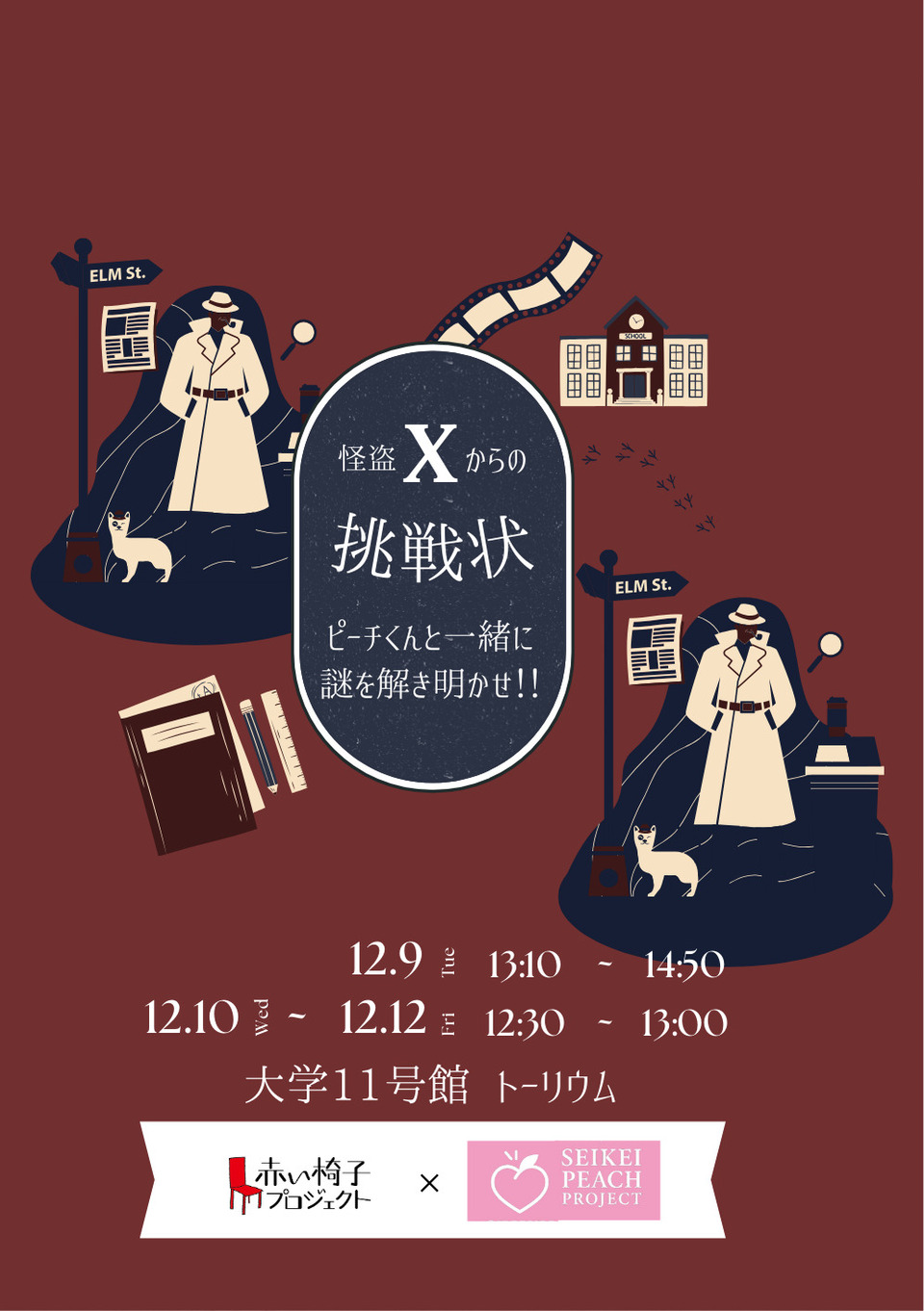 12月9日(火)~12月12日(金)、11号館トーリウムにて、蹊プロジェクトとして活動している「SEIKEI PEACH PROJECT」による謎解きイベントを開催しました。