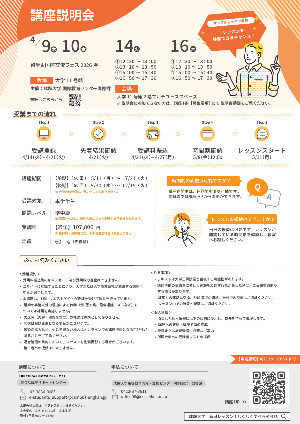 成蹊大学では、2025年度に引き続き、2026年度も11号館ラーニングコモンズ トーリウムにて「毎日レッスン!わくわく学べる英会話」を開講します!