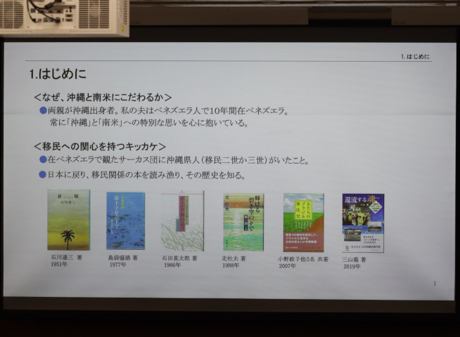 当日は、沖縄から南米へ移民として渡った人々の子孫である日系二世・三世のうち、沖縄に逆移民した人々の苦悩と活躍をテーマに講演が行われました。