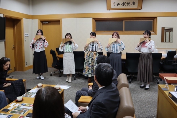 和やかな懇談に続いて、成蹊大学パンフルート・サークルによるミニ・コンサートが催されました。ルーマニアの伝統的な楽器であるナン(パンフルート)の美しい音色に全員が耳を傾けました。