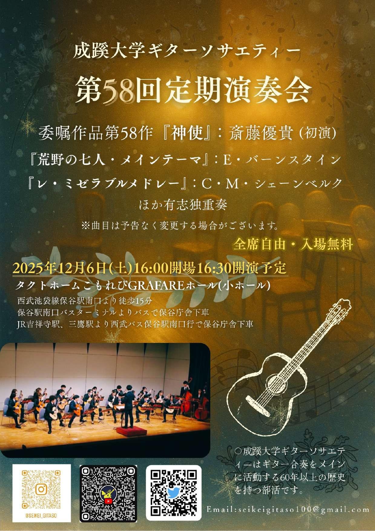 成蹊大学ギターソサエティーによる、2025 年冬のコンサートです。