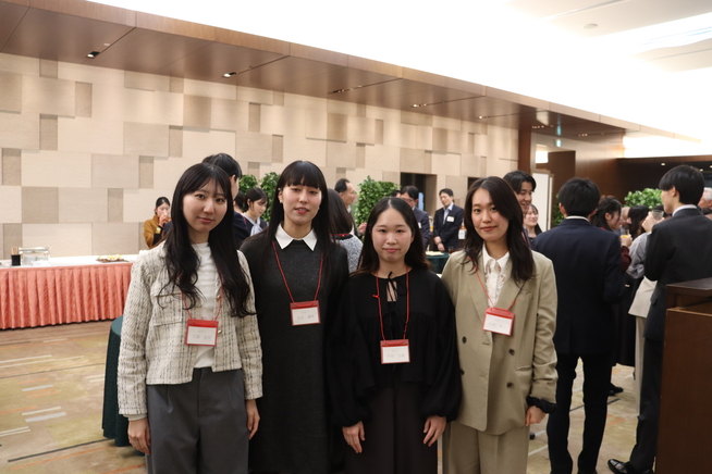 発表後の歓談では、学生と関係者がテーブルを囲み、研修内容やキャリア観、学びの活かし方などについて活発な交流が行われました。多様な業界・職種の視点に直接触れられる貴重な機会となり、学生にとって今後の学修や進路を考えるうえでも大きな刺激となりました。