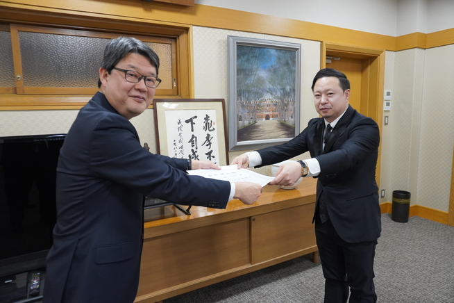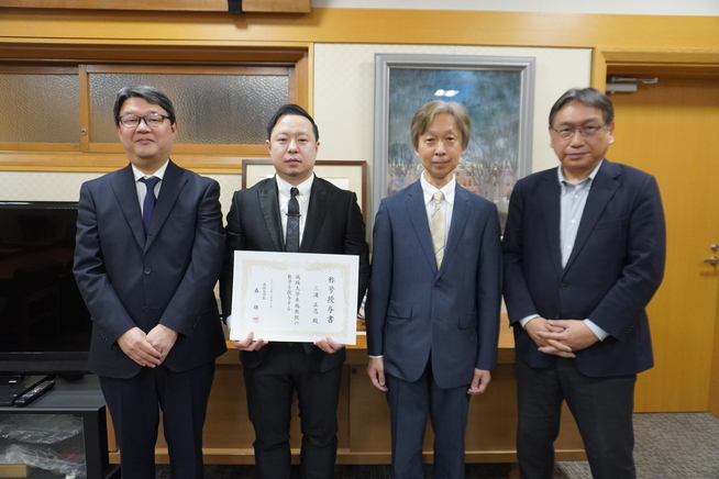 3月16日(月)、理工学部/大学院理工学研究科 三浦正志教授/リーディングリサーチャー(専門分野:電子・電気材料工学、電磁現象学、超伝導工学、結晶成長学)に対し、卓越教授称号授与式を執り行いました。成蹊大学卓越教授の称号は、専門分野において特に優れた業績を挙げ、学内外において先導的な役割を果たしている教員のうち、著名な賞又は顕彰を受けた者に対し授与されるものです。三浦正志教授は、世界最高特性を有するさまざまな超伝導材料の研究開発を推進し、その卓越した研究成果により、今年2月3日(火)、日本学術振興会賞を受賞されました。これらの功績が高く評価され、このたびの称号授与に至りました。