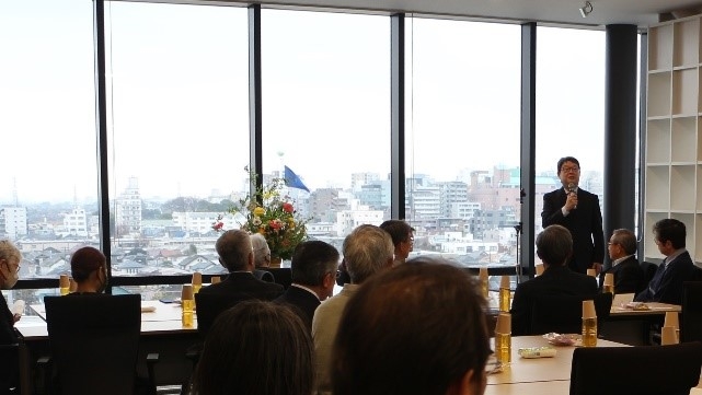 式典後には懇談会が行われ、本学学長・森雄一のご挨拶の後、授与を受けた自由大学学生の皆さまは、武蔵野地域五大学の各学長および学長代理の先生方、自由大学学長、市長、教育長と交流を深められました。