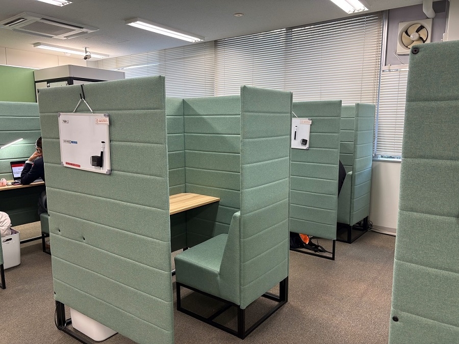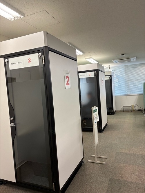 また、半個室ブースも特徴の一つです。適性検査を受講したり、オンラインの説明会へ出席したりなど、集中して行いたい人にピッタリの設備です!