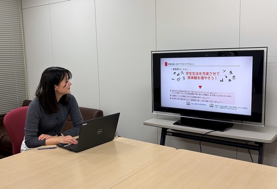 定期的に就活のセミナーを行っており、有益な情報を手に入れることができます。もし、予定があって参加できないといった場合であってもキャリア支援センターWEB動画で見返すことができます!