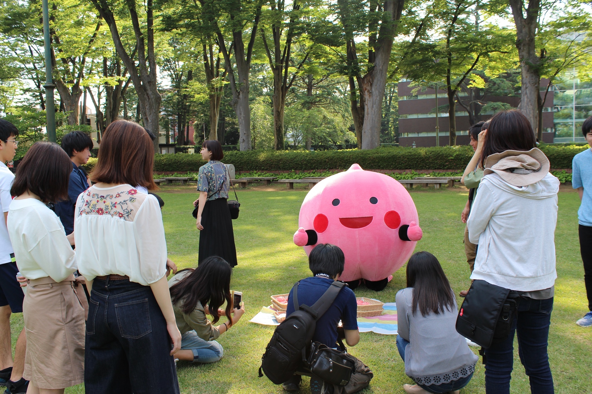 ピーチくんパンを食べるシーンの前に、インスタグラムやWEB用の撮影会になる場面もありました。