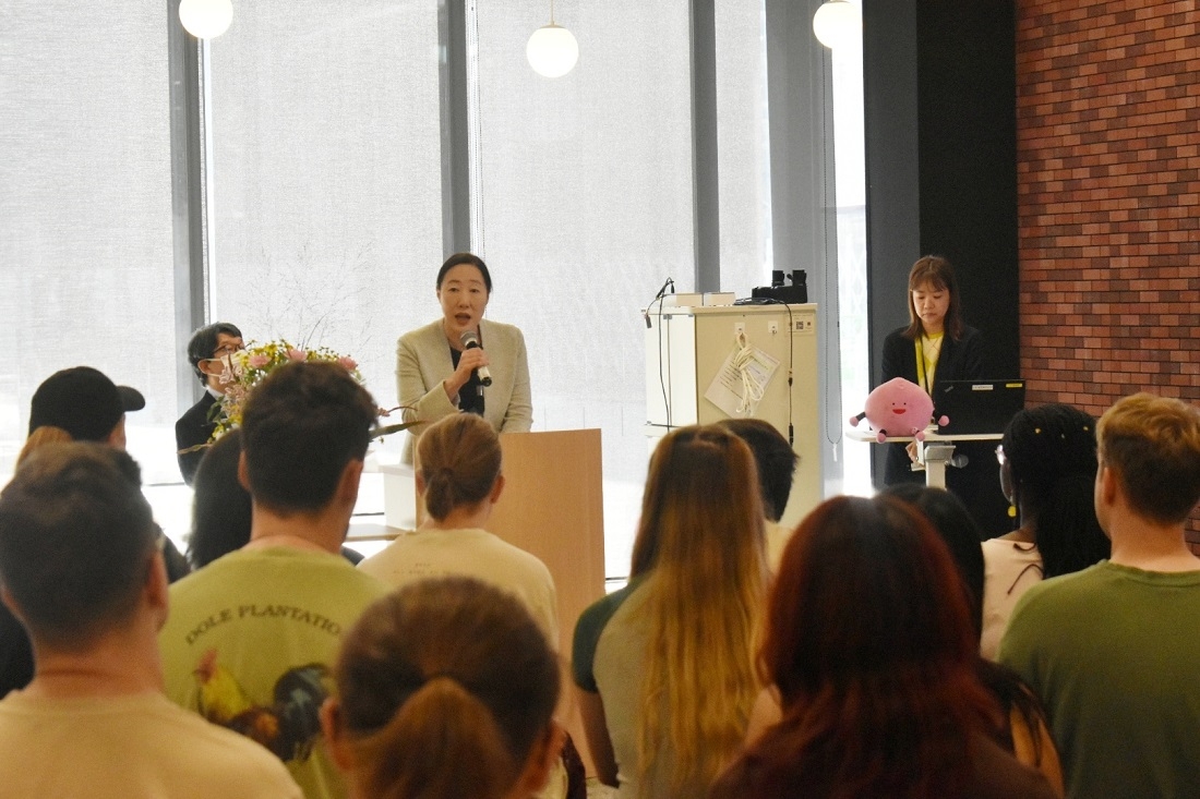 森学長による歓迎の辞では、これからの留学生活の不安を拭うような力強い言葉が贈られました。
