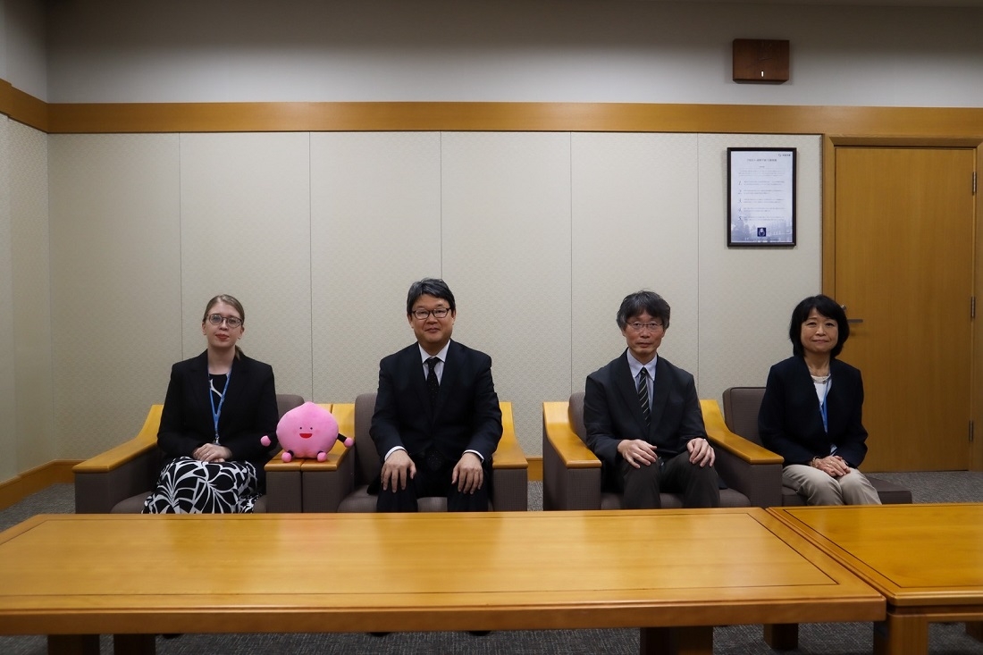 (左から、バラニャク平田専任講師、森学長、藤原教授、平山教授)