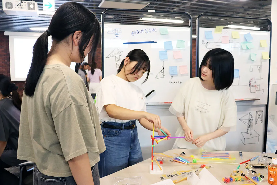2025年のプログラムでは、エンジニアリングの面白さを「発泡スチロール製クレーンの製作」を通じて体感しました。どのようなクレーンを製作すれば、より重い鉛を持ち上げられるのか。参加者同士が協力して作りあげたクレーンで競い合いました。