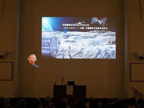 2つの目の諏訪宇宙飛行士の御講演では、宇宙開発がSociety5.0において担う役割の1つとしてインフラ基盤の整備を挙げられていました。世界銀行で担当されていた西アフリカの食糧安全保障のプロジェクトを例に、そこで問題になっていた様々な情報の収集と維持管理に衛星を活用することで、宇宙開発が国際開発にも大きく貢献できる可能性を示唆されていました。また「昨日のコーヒーは今日のコーヒー」に象徴されるように宇宙空間での生活は限られた資源を最大限活用する必要があり、今日注目されている持続可能な社会を推進するうえで必要不可欠な技術が宇宙開発の現場で正に蓄積されているとのことでした。後半では宇宙飛行士の訓練の話があり、イタリアの洞窟での訓練や航空会社の支援のもとで実施されたCRM(Crew Resource Management)訓練のお話をされ、閉鎖的な空間で、かつストレスの多い過酷な状況下で、いかに正しく状況を認識し、周りとコミュニケーションをとり、個々人がリーダーシップを発揮し直面している問題を解決するか、宇宙飛行士にとって欠かせない能力についてご説明して頂きました。そして御講演の最後には今後の宇宙開発の将来像についても御説明して頂きました。