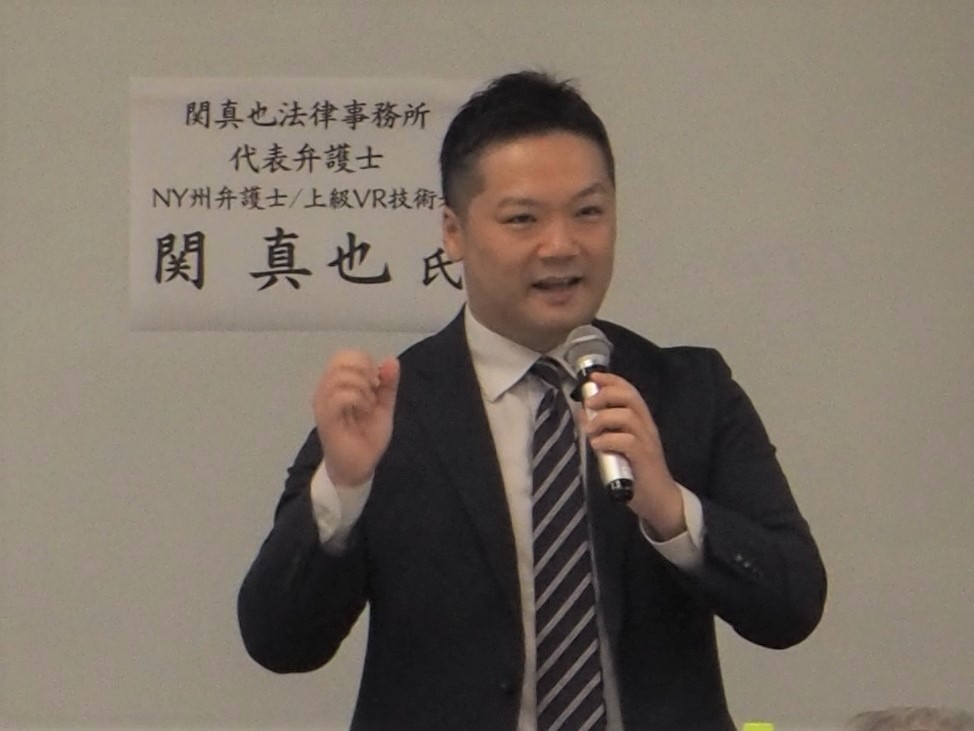 関先生は、日本及びNY州の弁護士であるのみならず、上級VR技術者の資格もお持ちであり、法律と先端技術に通暁する講師の先生による大変深い内容の講演となりました。