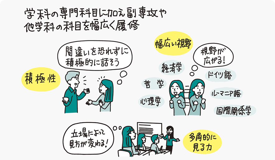 積極的な姿勢と多分野に触れる学修が視野を大きく広げてくれた