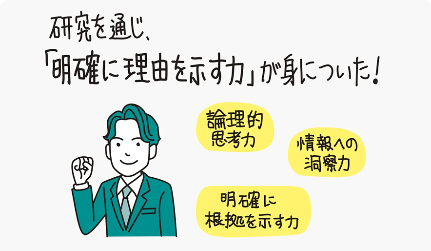 ものごとを計画的に進める力、分析し問いを立てる力、が文学部の学びで身についた