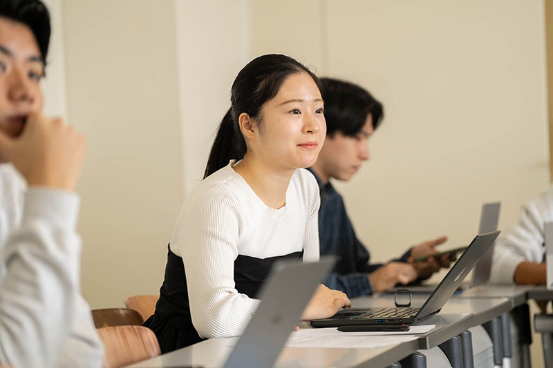独占禁止法(以下、独禁法)を軸に、学生それぞれが関心のある事象からテーマを設定し研究を進めます。独禁法の基本となる競争法を体系的に理解するため、3年次には教科書を使用してグループワークで調査・発表を行います。グループワークで、お互いに意見を交わすことで学生同士、親睦も深まります。4年次になると、リサーチペーパーや卒業論文に取り組みます。先生は、私たちの、些細な疑問や興味に対しても真摯に向き合い、研究への道筋をサポートしてくださいます。