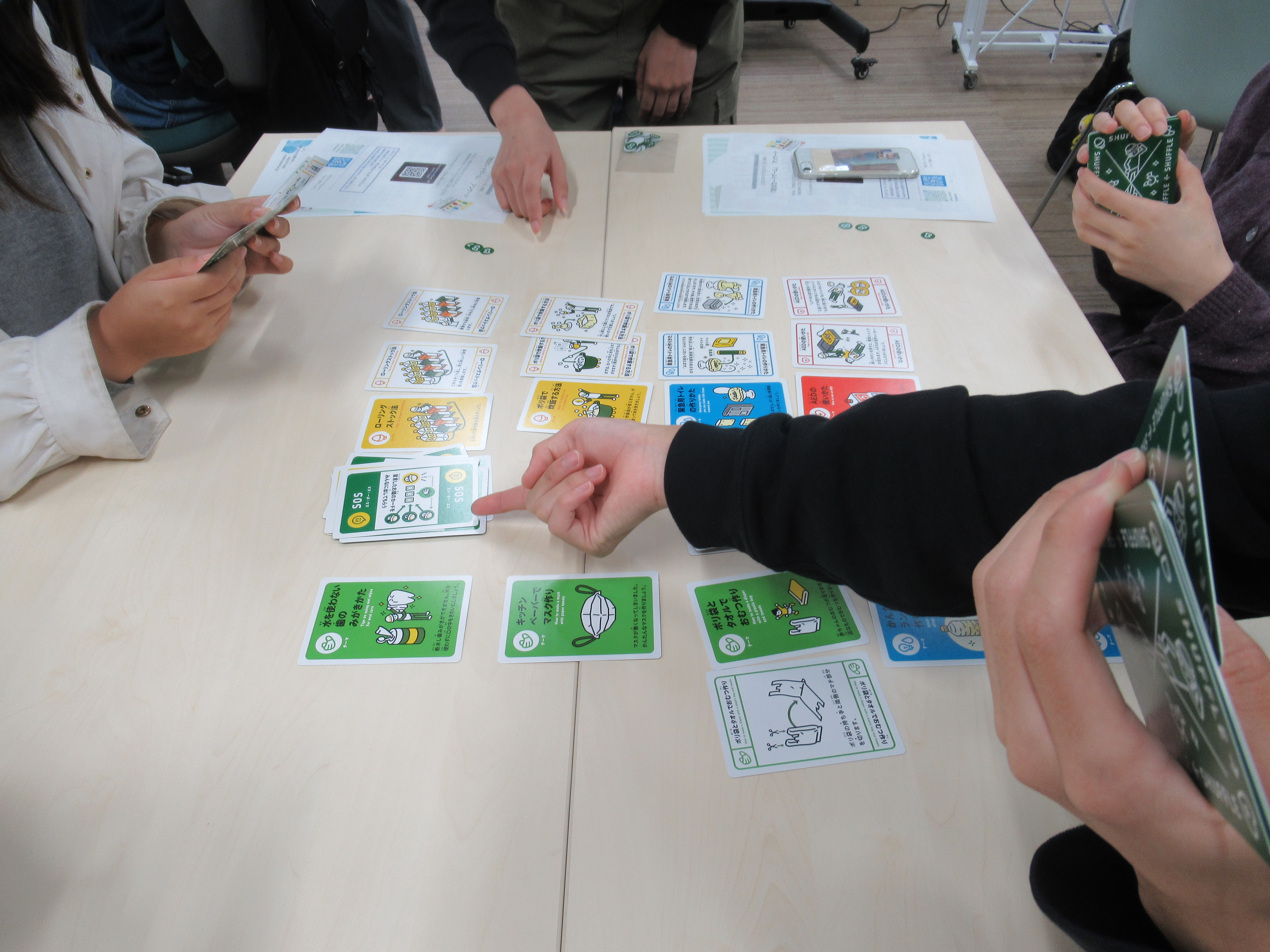 【内 容】防災カードゲームは、12月6日(土)開催「SEIKEI防災フェス 学生と考える"もしも"のチカラ」に向けたプレイベントとして実施した。参加した学生からは「普段考えないような防災の知識づけになった。」「防災として実用的な内容を学ぶきっかけとなった。」といった感想があり、ゲーム自体を楽しみながら、学びを深められることが実証できた。