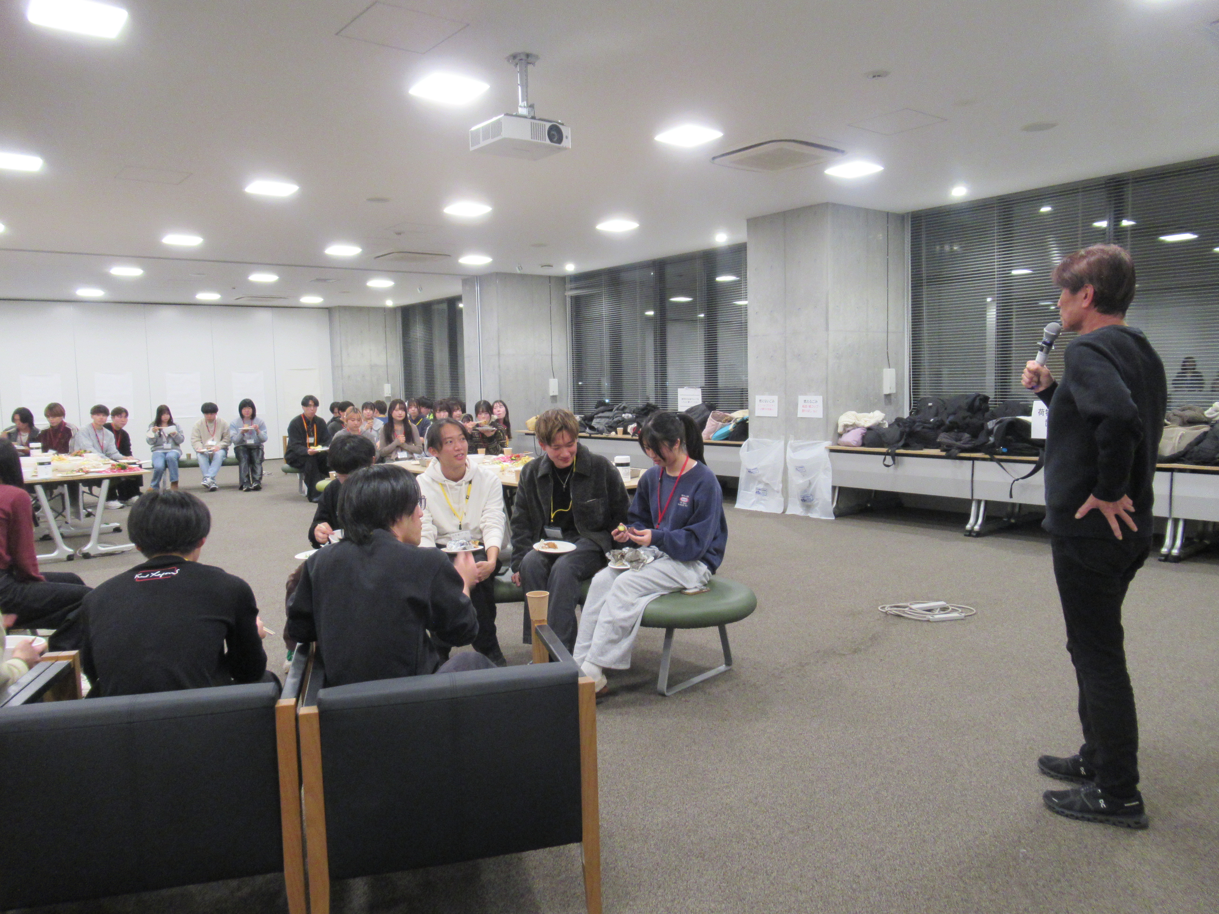 飲食をしながら自由に交流する歓談タイムには、積極的に他団体へ話しかける学生の姿もありました。とくに、団体の運営を担う幹部の学生同士は、互いの課題を共有し合うなど、有意義な情報交換の時間となっていたことが印象的でした。