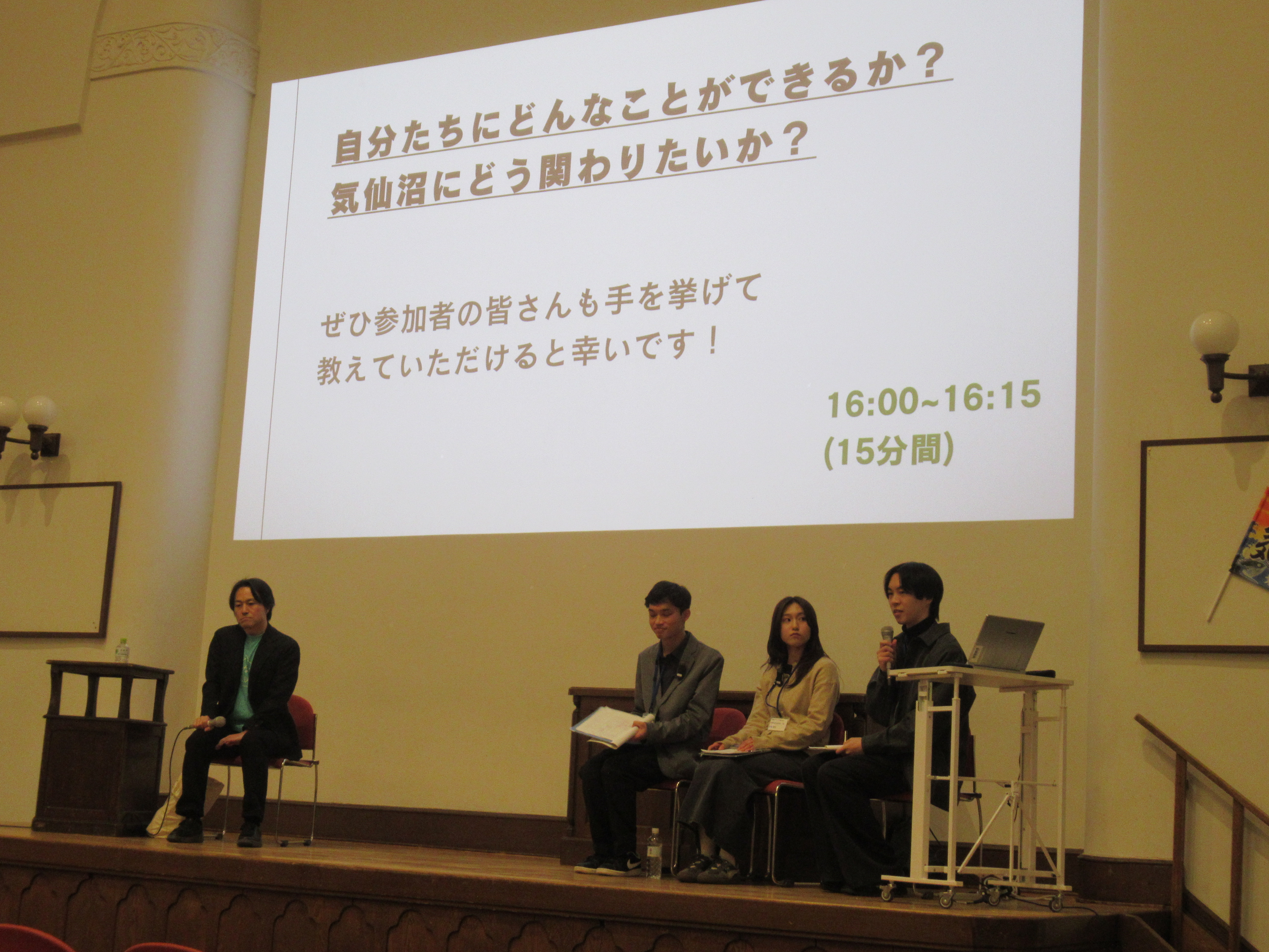 風間監督による映画制作の話や企画経緯の紹介を行い、参加者の感想や監督への質問(アンケート結果を活用)を共有しました。さらに、現在の気仙沼の状況や、参加者が東北・気仙沼とどう関わりたいかという意見を共有し、吉祥寺の「東北物産店」も紹介しました。
